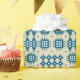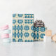 Um rolo do papel de envolvimento muito à moda, com um teste padrão de motivos tradicionais da tapeçaria de Galês nos azuis marinhos em um fundo do Sable.
