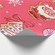 A sweet and festive artwork featuring charming gingerbread style Santa faces, cheerful snowmen, decorated Christmas tree cookies, peppermint candies, ornaments, and delicate snowflakes set against a bright pink background. The playful mix of holiday treats and whimsical details creates a warm, joyful, and delightfully cheerful Christmas vibe.