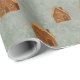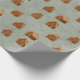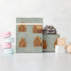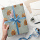 Soft illustrated wrapping paper with a repeating gingerbread house pattern on a muted, textured background.