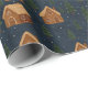 Cozy Christmas wrapping paper featuring a hand-painted gingerbread village pattern on a deep blue winter background. Sweet gingerbread houses, evergreen trees, and gentle falling snow create a warm, festive feel perfect for holiday gift wrapping. A charming choice for Christmas presents, winter celebrations, and seasonal gift giving.