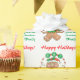 Este presente de Natal festivo apresenta uma bela imagem de desenho animado em verde, vermelho e marrom de um homem de pão de gengibre segurando uma placa que soletra JOY. O texto acima do gengibre diz "Felizes Feriados" em vermelho brilhante no Natal, e sua própria personalização aparece em verde brilhante no feriado. Todo o texto é fácil de personalizar. Divertido e festivo pelos pacotes de presentes, especialmente para crianças. Certifique-se de ver as etiquetas de etiqueta de presente correspondentes em nossa loja.