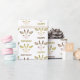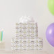 Este papel de presente de aniversário feliz tem um padrão divertido de faces de girafa marrom e dourada. Entre os rostos estão as palavras "Parabéns", alternando também em marrom e ouro. Adequado e divertido para todas as idades.