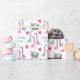 Girafas pontudas adoráveis em cores pastéis, cor-de-rosa e roxo, combinam-se com um lindo elefante bebê para dar as boas vindas ao novo bebê neste papel embrulhado. Junto com as imagens de animais estão corações cor-de-rosa, e seu texto personalizado. Tudo é colocado sobre um fundo branco. Você pode facilmente fazer com que os campos de texto digam o que quiser, então você pode usar este artigo para outras ocasiões como aniversários.
