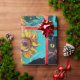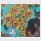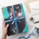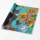 PAPEL DE PRESENTE GIRASSÓIS COM GATO PRETO EM TURQUESA AZUL