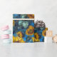Os girassóis estavam entre os assuntos favoritos de Vincent van Gogh para pintar. Nesta homenagem ao artista excelente, lindos girassóis foram rendidos no estilo Impressionista em tinta a óleo, e experimentalmente trabalhados em um padrão de repetição perfeito. Isto faz um belo papel de embrulho de presente adequado para qualquer ocasião.