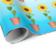 Papel De Presente Girassóis em um papel de envolvimento azul do