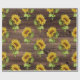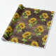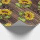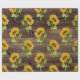 Os girassóis inspirados em Vintage estão sobre um fundo de madeira marrom rústico. Perfeito para a desvinculação de arte, artesanatos de papel ou embrulho de presente. Certifique-se de verificar o modo de exibição de "costura" para garantir que ele seja aceitável.