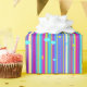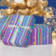Meninas embrulhando papel em blues, roxo, listras, bolinhas.