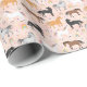 This cute and magical girls’ birthday wrapping paper features a pastel pink pattern with unicorns, horses, rainbows, and stars, perfect for any unicorn or horse enthusiast.