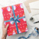Com flocos de neve brancos, acentos cor-de-rosa e padrão de bolinhas