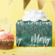 Este esmalte moderno apresenta as palavras "Feliz Natal" em letra branca de pincel sobre um fundo verde esmeralda de folha de alumínio borrifado com falso brilho.
