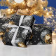 Traga as vibrações da festa para dar presentes com este impressionante papel de embrulho apresentando um padrão perfeito de bolas de ouro e disco prateado contra um fundo preto elegante. As esferas metálicas brilhantes criam uma design impressionante e divertida, perfeita para qualquer celebração, seja aniversário, Véspera de Ano Novo, ou festa de temas retrortemáticos. As cores de alto contraste e reflexões brilhantes dão a este papel de embrulho uma sensação animada e festiva que fará seus presentes brilharem e brilharem. Ideal para quem ama um toque de glamour e talento de discoteca, este papel de embrulho certamente impressiona.