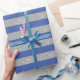 Papel de enrolamento de tiras de brilho azul e prateado. É um belo padrão. Perfeito para embrulho de presente e artesanato.