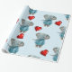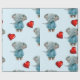 Papel De Presente Glossy Wrapping Paper Blue Elephant Red Hearts