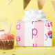 Papel De Presente Glossy Wrapping Paper Pink Stripe Happy Birthday
