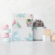 O padrão de férias festivo apresenta uma aquarela ilustrada como gnomos brancos em barrancos de rodas, bicicletas e torres de carregando de presentes, juntamente com poinsetos holly e brancos sobre fundo de cinza