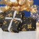 This elegant and glamorous wrapping paper is versatile and can be used for giving gifts or art and craft projects. It is ideal for any occasion such as Christmas, birthdays, weddings, bridal showers, baby showers, anniversaries or general gifts. The design features faux gold glitter poinsettia flowers on a black background. Perfect for the holiday season.