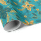 Papel De Presente Gold and Teal Blue Christmas Poinsettia Flowers