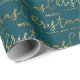 This elegant and glamorous wrapping paper is versatile and can be used for giving gifts or art and craft projects. It is ideal for any occasion such as Christmas, birthdays, weddings, bridal showers, baby showers, anniversaries or general gifts. The design features gold script word art on a teal background. Perfect for the holiday season.