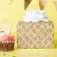 Adicione um toque brilhante debaixo da sua árvore de Natal com este papel de empacotamento de padrão quatrefoil marroquino de ouro personalizado. O invólucro de presentes tem um fundo de folha de ouro falsa. Há também áreas para um inicial de família monograma opcional. Faz um excelente personalizado para um presente de Natal ou outro feriado!