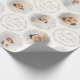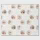 Christmas gift wrapping paper feature modern Merry Christmas script and botanical leaves wreaths, with personalized family name and 6 photos in gold color. simple and elegant.