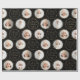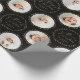 Christmas gift wrapping paper feature modern Merry Christmas script and botanical leaves wreaths, with personalized family name and 6 photos in black and gold. simple and elegant.