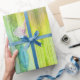Elegant, iridescent, and a little bit Zen, this stunning, esoteric, “chakra-esque” wrapping paper shines golden like the sun on a misty morning.