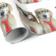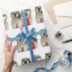Todos ama um nerd, não fazem? Este papel de embrulho caracteriza dois cães do golden retriever que vestem vidros pretos do nerd. Um par é mantido unido mesmo com fita adesiva de prata!