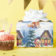 Papel De Presente Golden Retriever Rustic Cabin Santa Hat Christmas