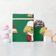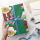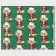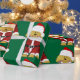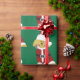Festivo Natal Feriado Goldendoodle Cachorro vestindo rabisco de rabisco de rabisco e o chapéu de Papai Noel segurando cana doce na boca. Papel de natal bonito para amantes de ouro!