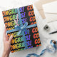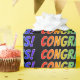 Este design de papel de embrulho divertido e excitante apresenta a mensagem "CONGRATOS!" com os personagens que têm um padrão de gradiente inspirado no espectro do arco-íris. Um papel de embrulho como este pode ser usado ao embrulhar um presente de parabéns para alguém, como um presente de formatura, ou um presente de chá de casamento, ou outro tipo de presente.