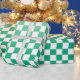 O gradiente verde claro para escuro e o padrão branco marcado adiciona um sotaque colorido aos presentes. Para ver o design de ombré geométrico em outros itens, clique no link "Artes Rocklawn". © Claire E. Skinner, Todos Os Direitos Reservados.