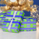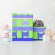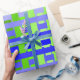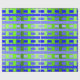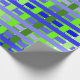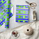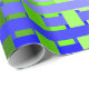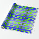 Este papel de embrulho tem um design geométrico de linhas em tons de azul e verde tecidas para fazer um xadrez.
