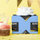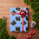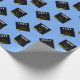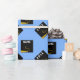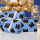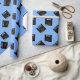 Papel de presente de graduação azul claro criativo para o graduado com chapéus de graduação pretos e dourados. Edite o texto para adicionar o nome dele ou dela e o ano.