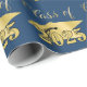 Papel de empacotamento de gradação que apresenta um padrão repetitivo de CLASSE DE ANO (ano editável) em ouro com um boné de formatura de folha de ouro metálico falso ou cartão de cor contra a sua escolha de fundo colorido (apresentado num azul editável). Use para empacotar presentes de graduação ou como fundos de exibição ou revestimentos de mesa na festa de formatura. ASSISTÊNCIA: Para obter ajuda com a modificação ou personalização do design, alteração de cor, redimensionamento, transferência do design para outro produto ou, se você quiser coordenar itens, entre em contato com o designer ANTES DE PEDIR através da guia MENSAGEM de bate-papo Zazzle abaixo ou envie um email para makeitaboutyoustore@gmail.com.
