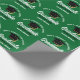 Este papel de embrulhamento de festa de formatura, verde e branco, moderno, personalizado apresenta a tipografia clássica do seu segundo grau ou nome da faculdade para a classe de 2025. Personalize com o seu ano de graduação com o script de chic manuscrito e o boné de formando preto para o encapsulamento de presentes personalizados do formando excelente.