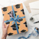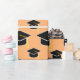 Simple modern wrapping paper for Nursing Graduates in APRICOT, designed with black mortarboard silhouette in all over seamless tiled pattern.