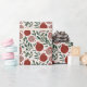 Granada: Pomegranatos espanhóis é um padrão repetitivo em vermelho rico, burgundy, verde, esbranquiçado. Um design elegante e vibrante de folhas repetidas, romãs inteiros e divididos em metade, e sementes vermelhas rubi, reminiscentes de um pomar na Espanha.
