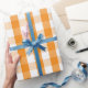 Um papel de envolvimento projetou com um teste padrão alaranjado e branco do guingão em tamanho grande.