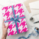 Papel De Presente Grandes rosa quente e branco Houndstooth