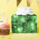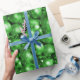 Um papel brilhante e brilhante de embrulho de Natal com um padrão festivo de decorações de árvores de Natal verdes e baubles para adicionar alguma reluz e glamour ao seu presente de Natal que embrulha esta época de Natal.