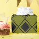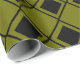 Este papel de embrulho tem um design moderno do século médio de diamantes negros sólidos com traços de diamante preto dentro num campo de verde.