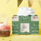 Christmas gift wrapping paper feature modern calligraphy merry Christmas and happy new year, family name typography, with personalized two photos in sage green and white.