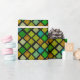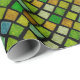 Esta ilustração é baseada na arte geométrica da abstração, esta design incorpora uma variedade de quadrados verdes-claros, verdes-mostardos e verdes-escuros.