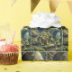 A green troll with pointy ears and a mischievous grin crouches playfully under an ancient, moss-covered stone archway