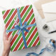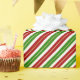 Este papel de embrulho festivo e divertido é versátil e pode ser usado para dar presentes ou projetos de arte e artesanato. É ideal para qualquer ocasião, como feriados, aniversários, casamentos, chás de panela, chás de fraldas, aniversários ou presentes gerais. O design apresenta faixas diagonais vermelhas e verdes em um fundo branco. Perfeito para o Natal.