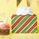 Este papel de embrulho festivo e divertido é versátil e pode ser usado para dar presentes ou projetos de arte e artesanato. É ideal para qualquer ocasião, como feriados, aniversários, casamentos, chás de panela, chás de fraldas, aniversários ou presentes gerais. O design apresenta faixas diagonais vermelhas e verdes sobre fundo dourado. Perfeito para o Natal.