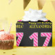 Este divertido design de papel de embrulho com tema de aniversário apresenta um grande número "17", com uma rosa claro e um padrão de listras cor-de-rosa-escuras. Também apresenta a mensagem "Feliz 17.º aniversário", e um nome personalizado. O fundo é preto colorido. O papel de embrulho temático de aniversário como este pode ser uma maneira divertida de embrulhar um presente ou de apresentar a alguém que comemora seu 17º aniversário. [~Z0000376]
