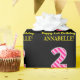 Este divertido design de papel de embrulho com tema de aniversário apresenta um grande número "2" com um padrão cor-de-rosa escuro e listras de rosa claro, juntamente com a mensagem "segundo aniversário Feliz", e um nome personalizado. O fundo é preto colorido. O papel de embrulho temático de aniversário como este pode ser uma maneira divertida de embrulhar um presente ou presente para celebrar o segundo aniversário de alguém. [~Z0000376]