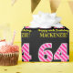 Esta divertida design de papel embrulhado com tema de aniversário apresenta um grande número "64" com uma rosa claro e um padrão de listras cor-de-rosa-escuro, juntamente com a mensagem "Feliz 64.º Aniversário", e um nome editável. O fundo é preto colorido. Um papel de embrulho como este pode ser usado para dar um presente ou presente em homenagem ao 64º aniversário de alguém. [~Z0000376]